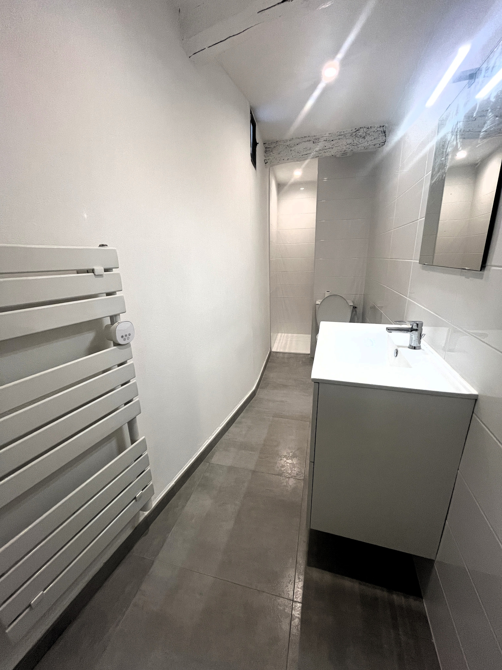 Dans le centre ancien de Saint Gilles, une maison de village rénovée de type T3 comprenant au rez-de-chaussée une cuisine aménagée avec une buanderie, au 1er étage un salon et une salle d'eau avec un wc, au 2ème étage 2 chambres. Logement climatisé !