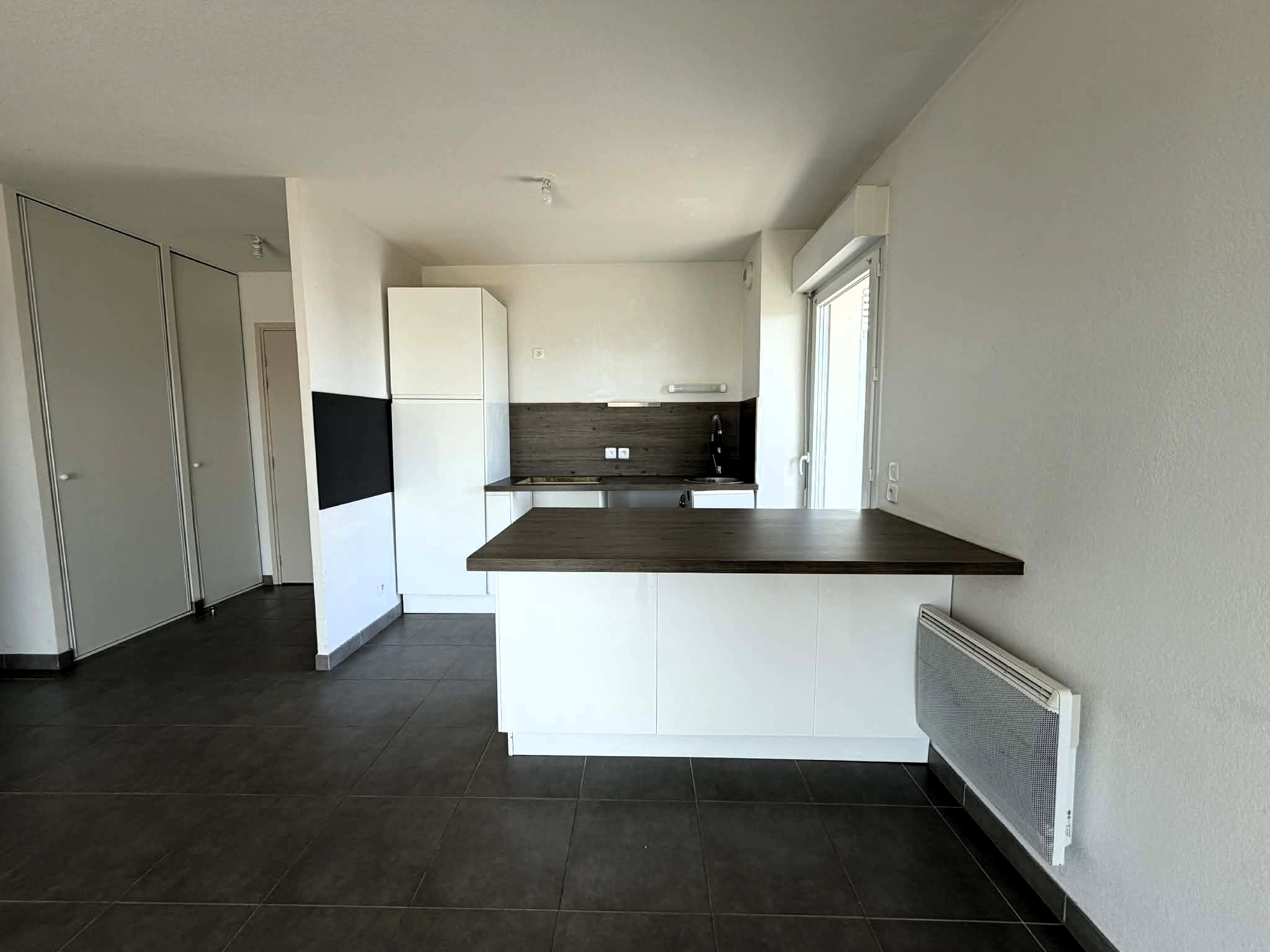 L’appartement se compose d’une belle pièce de vie avec cuisine aménagée et équipée (frigo et plaque de cuisson) ouverte sur le séjour, d'une buanderie, de deux chambres, d’une salle d'eau et d'un wc séparé. Ainsi que de nombreux placards de rangement.