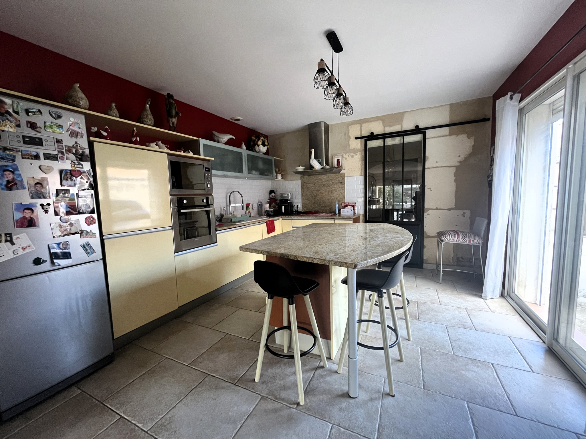 Une belle demeure rénovée avec goût, avec au rez-de-chaussée une cuisine aménagée et équipée ouverte sur une pièce de vie spacieuse ; qui donne accès à la terrasse et a un grand jardin clôt et arboré.